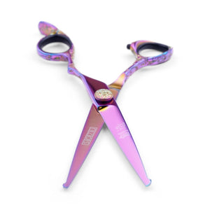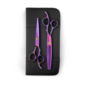 Sozu Rainbow Ball Tip cutting scissor and thinner rainbow duo is made from 440C Steel and have a pooch friendly protective ball tip at the end of the shear to make sure no animals are harmed in the grooming process.