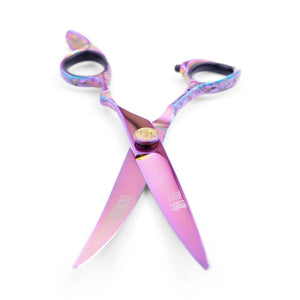 Sozu Curved rainbow scissor is made from 440C Steel and is your go-to everyday cutting scissor that is pooch friendly and helps ensure no animals are harmed in the grooming process from its curved blade creating the pawfect snip time and time again.