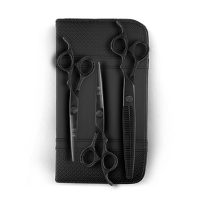 Sozu Floral Ball Tip cutting scissor and thinner black triple set is made from 440C Steel and have a pooch friendly protective ball tip at the end of the shear to make sure no animals are harmed in the grooming process.