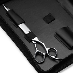 The offset handle in both grooming scissors brings the thumb into a natural position for cutting and the solid finger rest can never come loose and get lost. The tension system creates an extra smooth feel to the scissors.